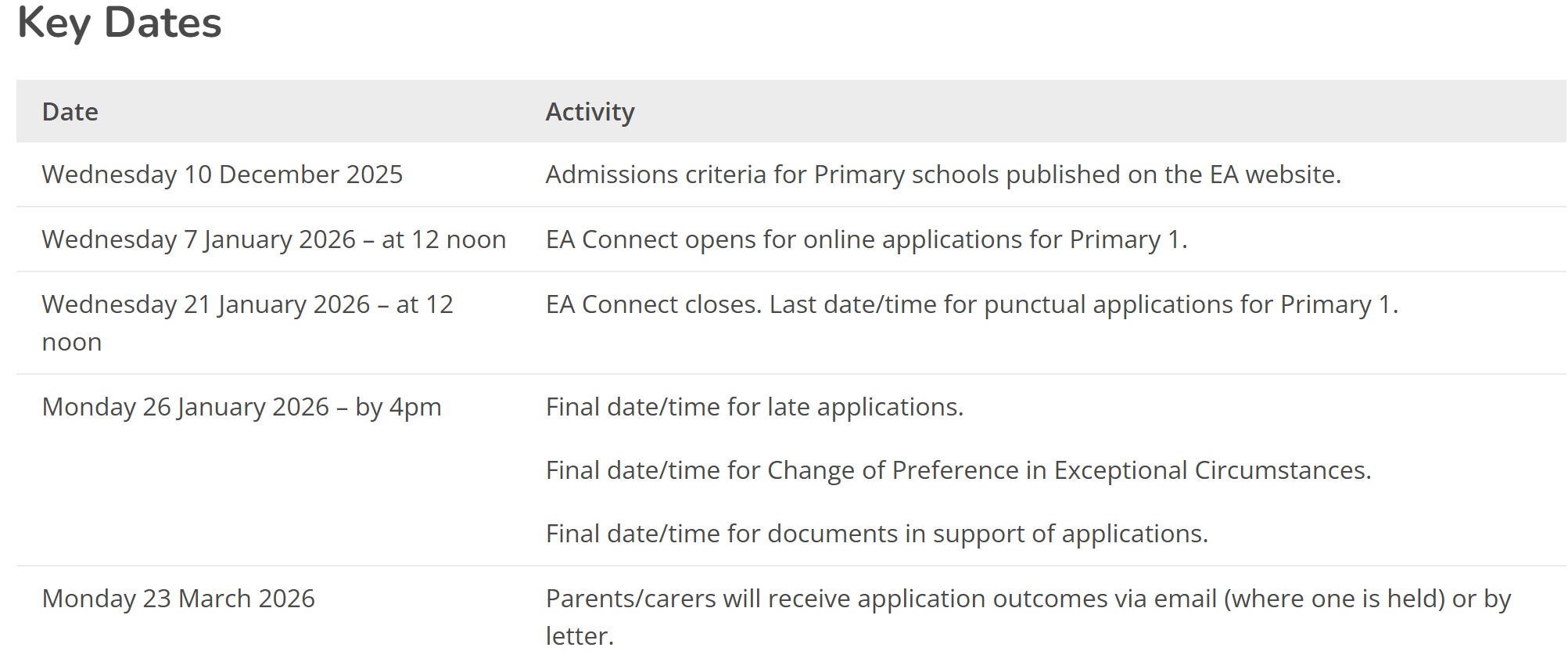 Admissions Criteria for Primary Schools will be published on Wednesday 10th December 2025.